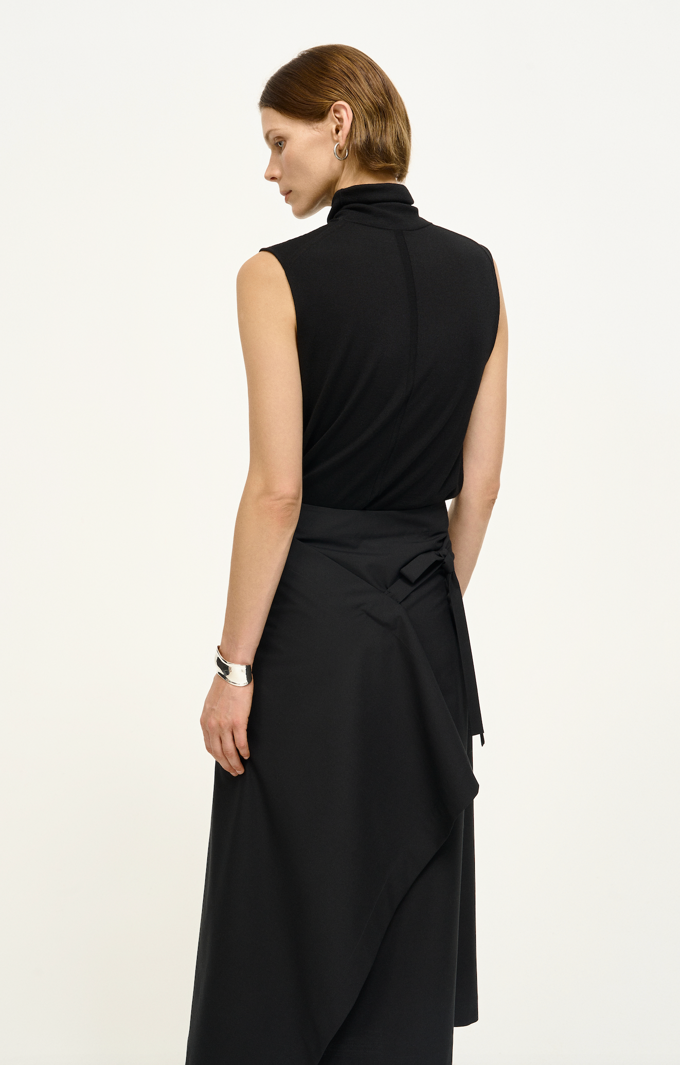 Wrap-Style Wool-Silk Midi Skirt