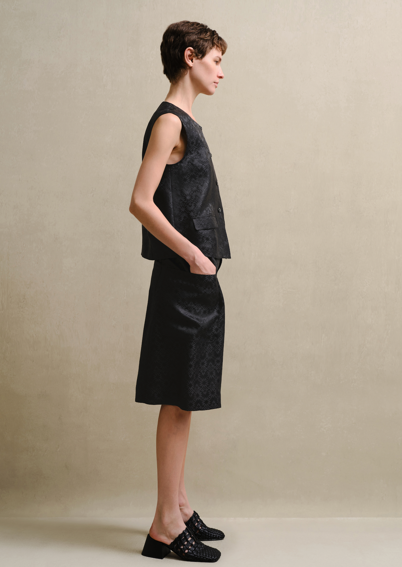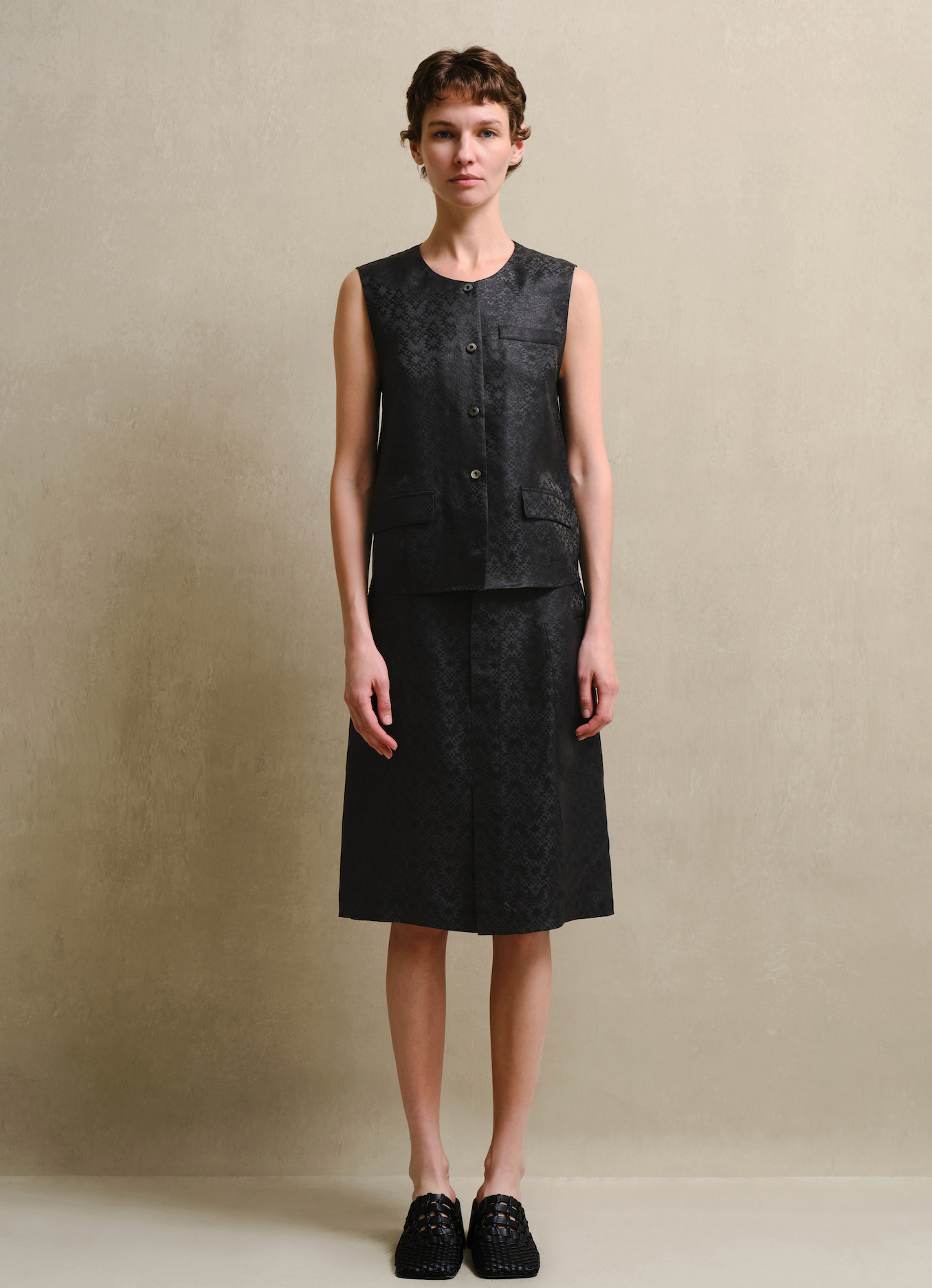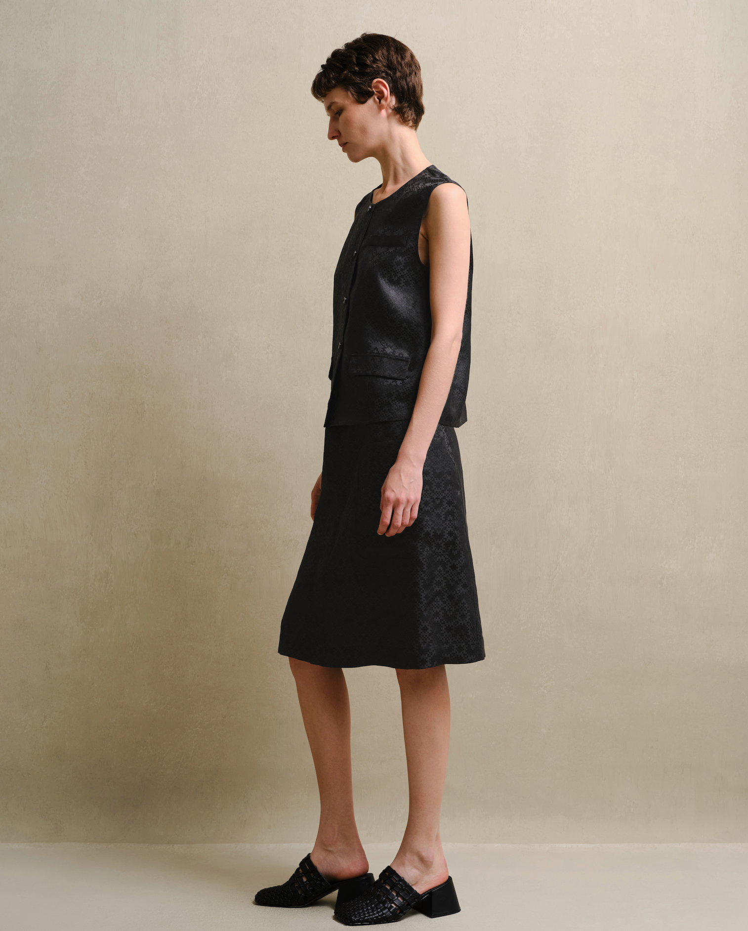 Silk-Blend Jacquard Slit Skirt